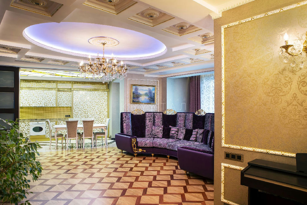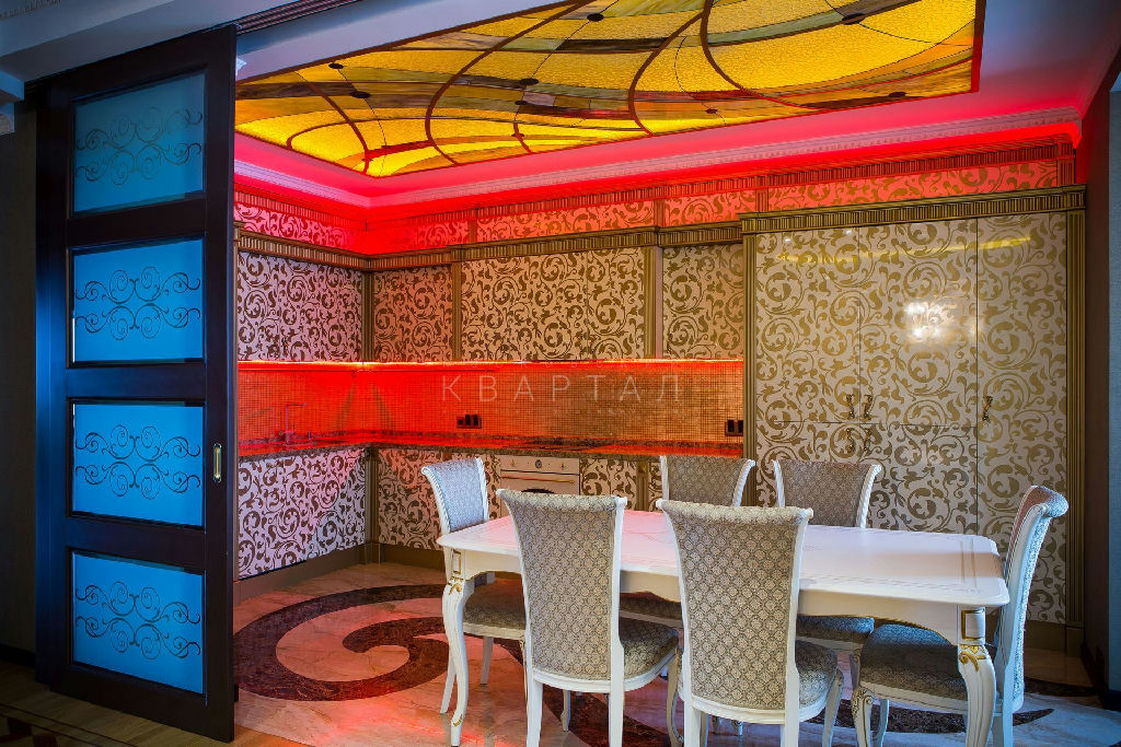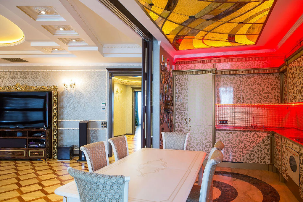 220 м2 кухня, просторная гостиная, три спальни, кабинет, сауна, три санузла. Интерьер выполнен по дизайн-проекту: художественный паркет, витражи Tiffani, мрамор, мебель Lanpas и Concrete, техника премиум-класса. Всё в идеальном состоянии, без визуального износа. Потолки 3 м, вид на город и во двор.
